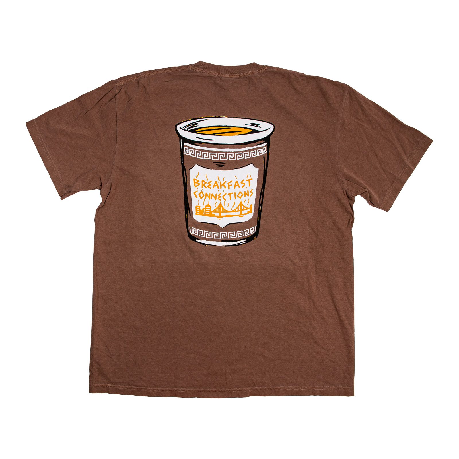 This shirt is for anyone who ever had to steal a Philly Titan to be able to blaze before you were of age to buy tobacco.. A brown pocket tee featuring the Breakfast Connections Anthora Cup logo on the back
